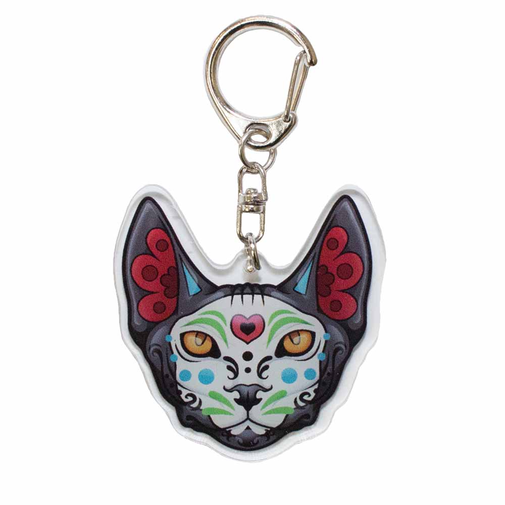 Día de los Muertos Sugar Skull Sphynx Cat Acrylic Keychain