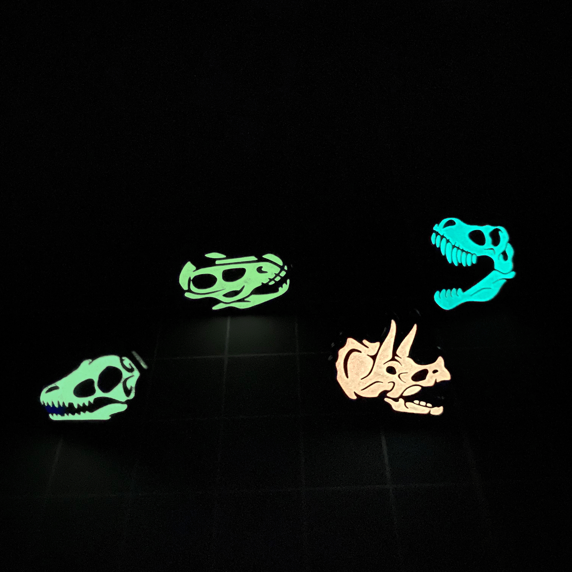 Neon Dino Skull Mini Enamel Pin GITD Set